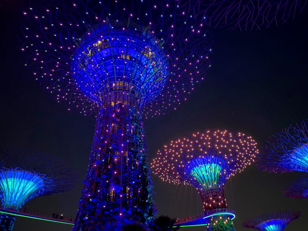 • futurystyczne Gardens by the Bay i zachwycający pokaz światła i dźwięku